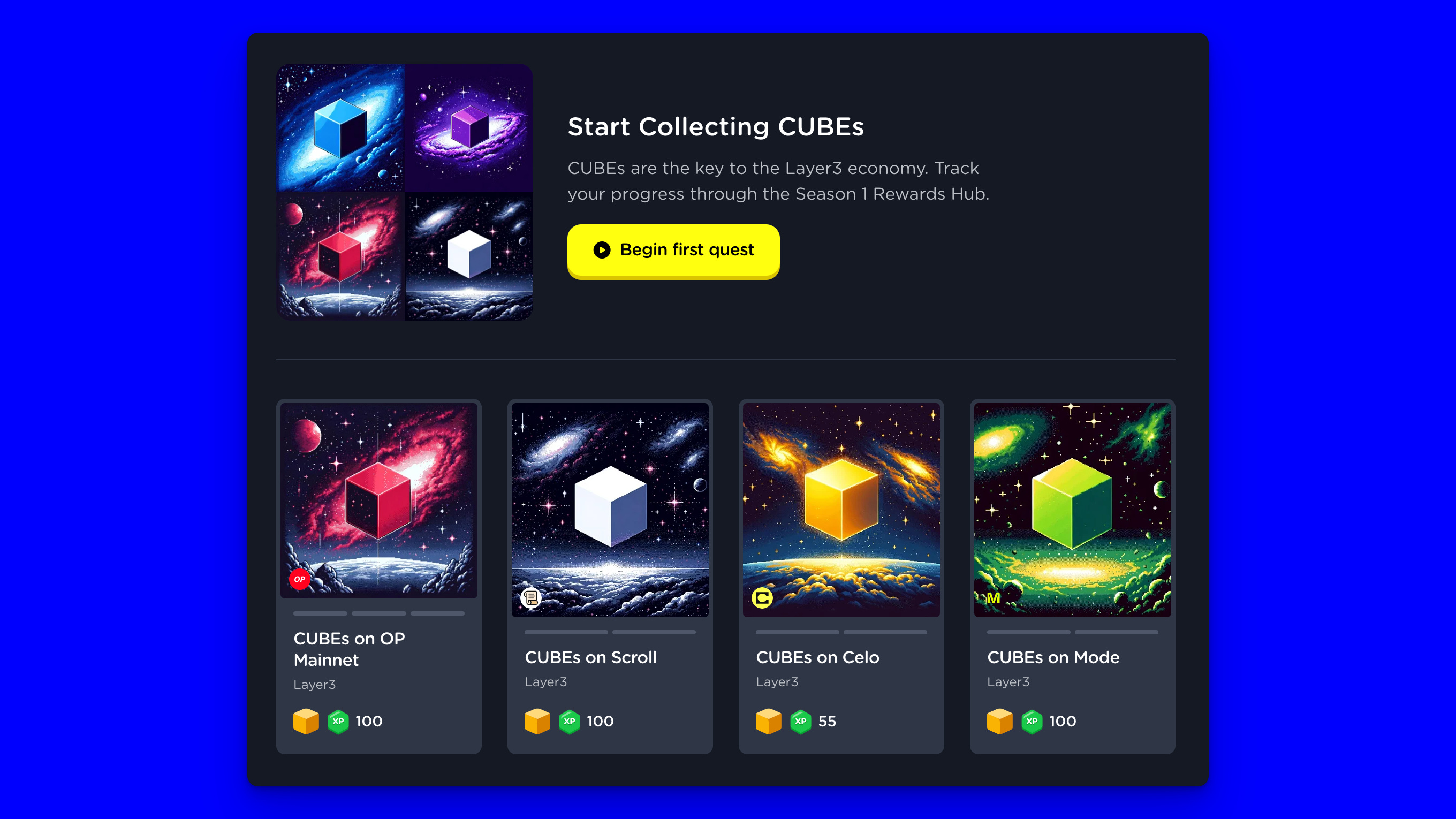CUBEs are special NFT (ERC-721) that you earn by completing Quests.