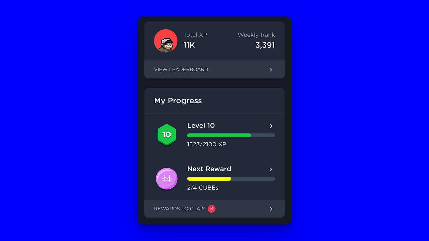 The more CUBEs you collect, the better the perks you unlock in the Rewards Hub: