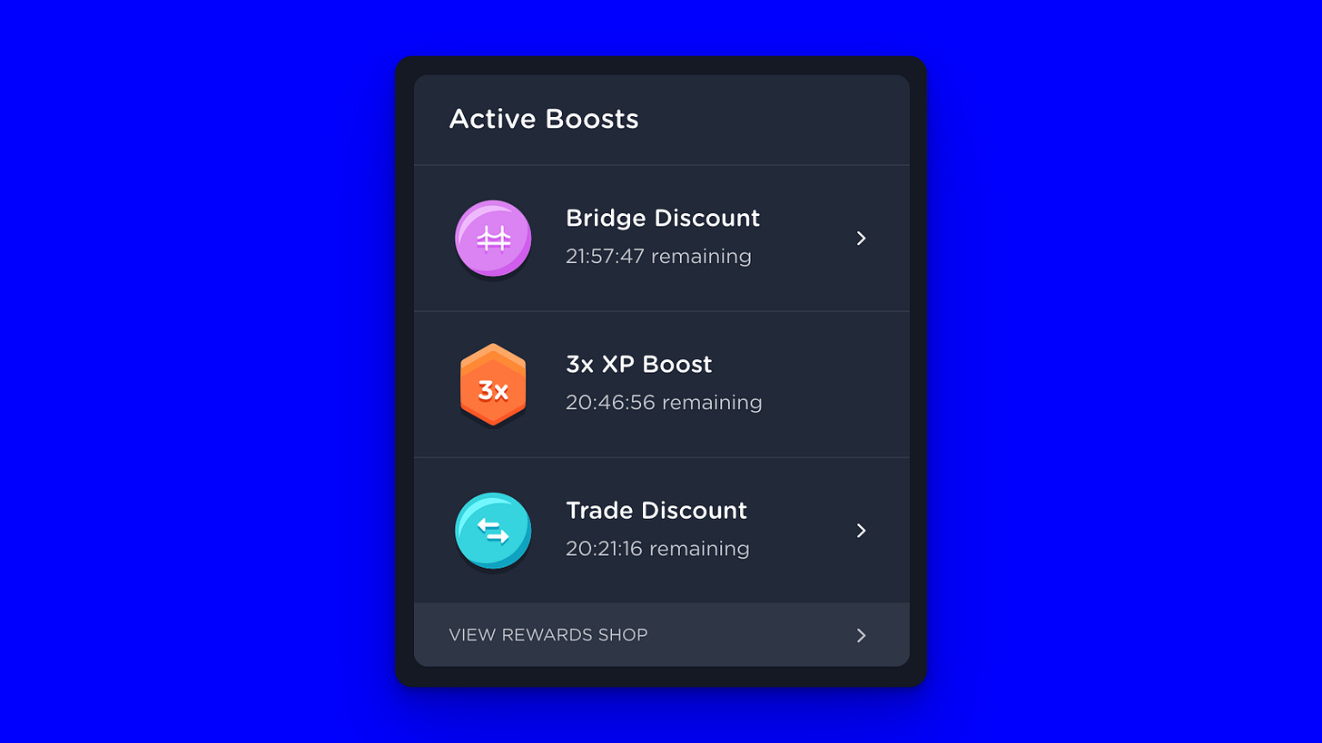 Gems: Layer3's in-game currency lets you buy XP Boosts, discounts on swaps and bridges, and more.